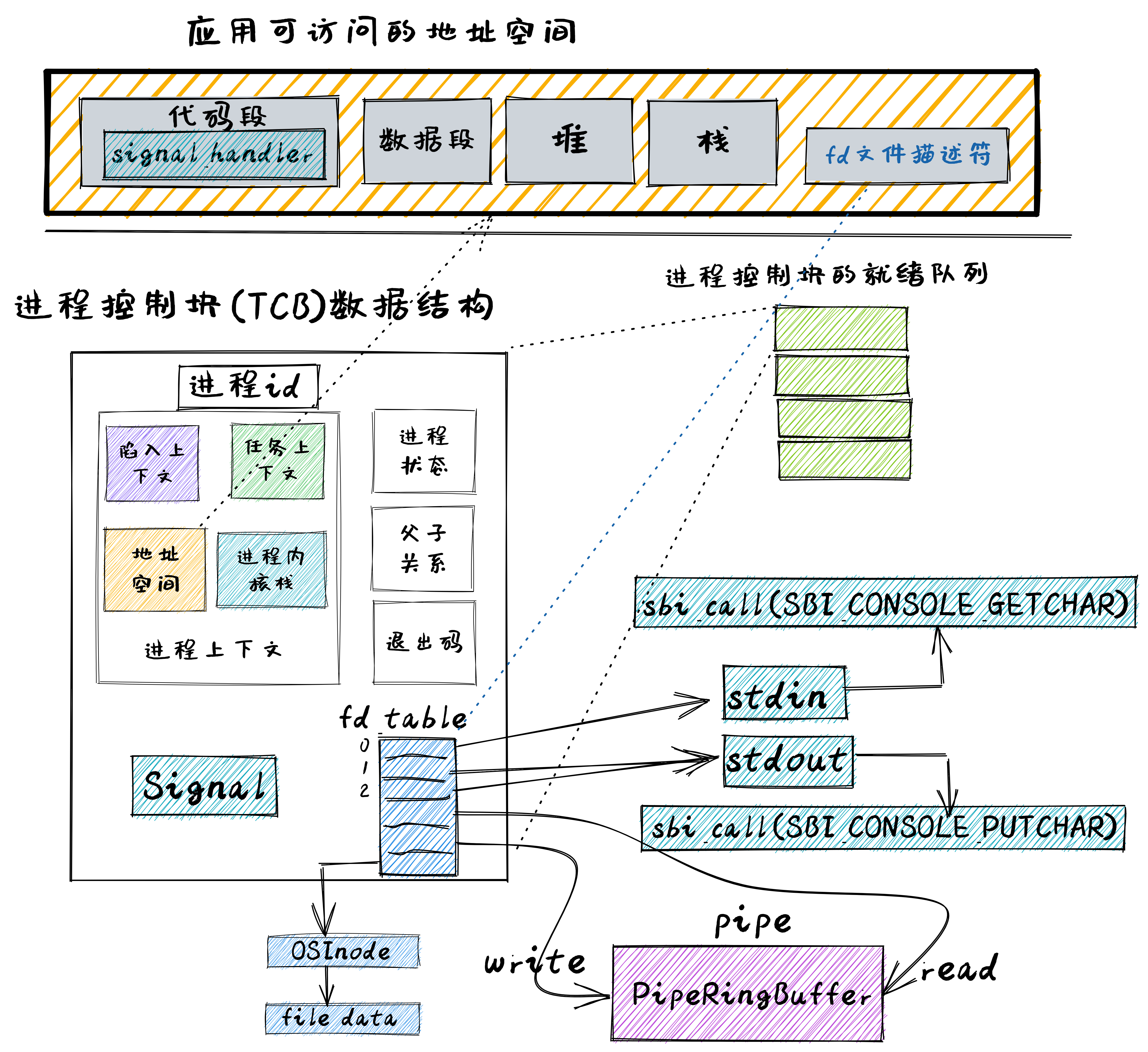 │ │ ├── fs.rs(修改:调整 sys_read/write 的实现,新增 sys_dup/pipe)